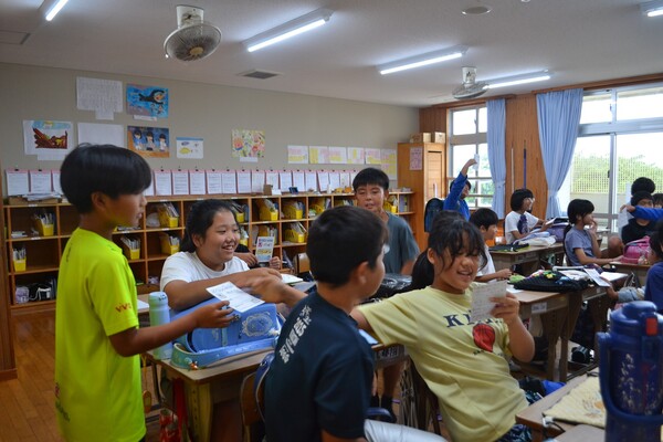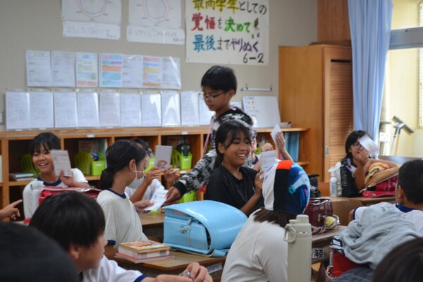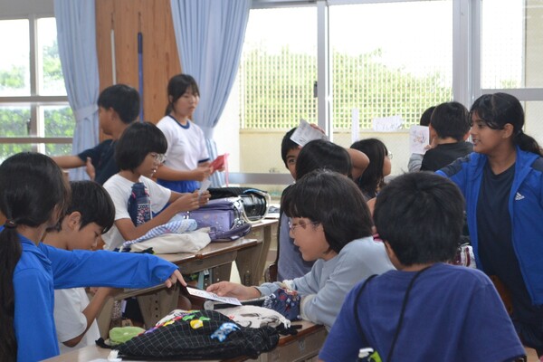 放課後に、図書委員が各クラスに読書ゆうびんを配達しました。