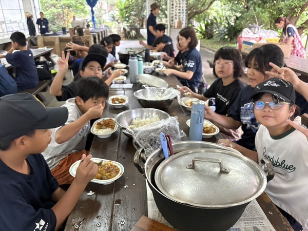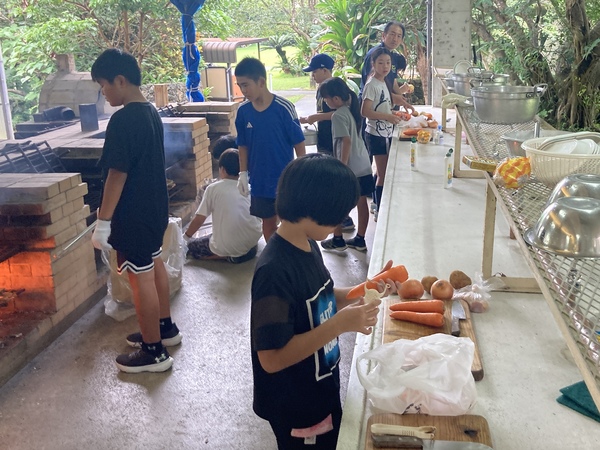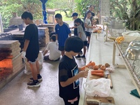 15:00からは、火おこしから始める野外炊飯、全グループ美味しくできました。