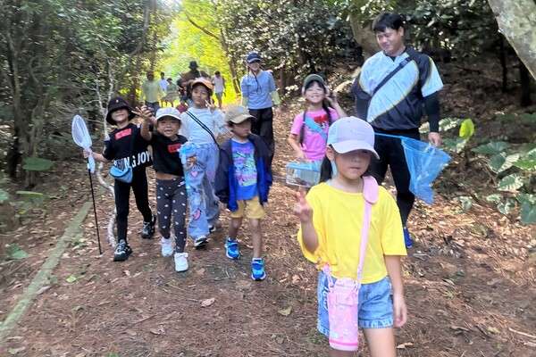 虫取りをする親子、形のいい落ち葉を探したり、松ぼっくりなど木の実を探したりする親子、中には鳥の巣やキノコを見つける子もいました。