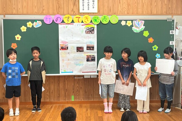 2年生は、先月、町たんけんに行った後、調べたことをまとめました。今日はそれを発表しました。