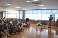 宮古島警察署の佐久田さんを講師に迎えて、講話をしていただきました。