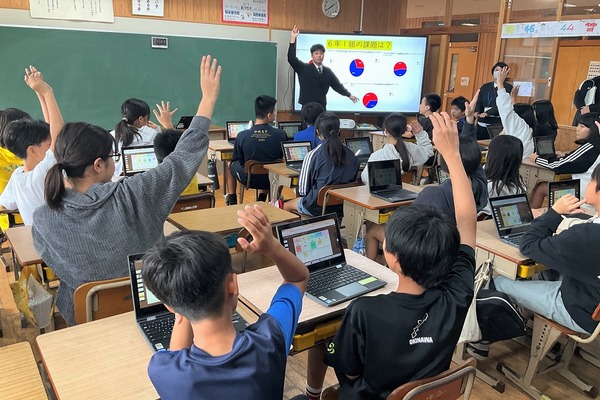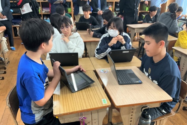 個人の考えから→グループ→全体とタブレットを使って思考を共有しながら、学級の意見をまとめていきました。
