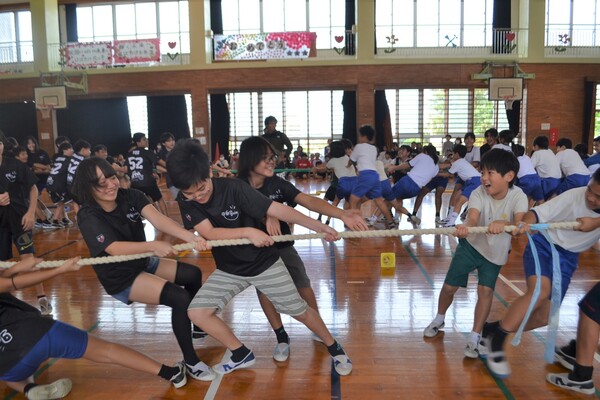 5年生は、恒例の5色綱引きで6年生と対決しました。