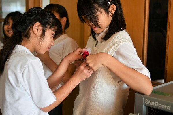 5年生も前日までの準備、今朝のコサージュつけ、式への参加、送り出しまでしっかりとバトンを引き継いでくれていました。