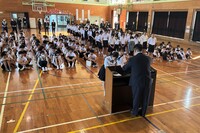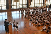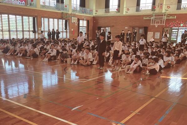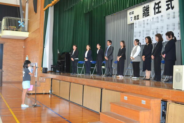 午後からは、離任式を行いました。6年生も参加して、いっしょに過ごした先生を見送りました。