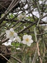 西城小学校には、2本の台湾小梅の木がありますが、可愛い白い花が今年も開花しました。