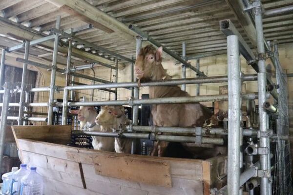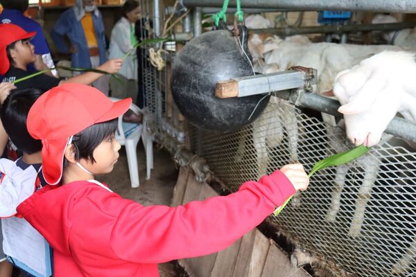 やぎ小屋では餌やり体験をしたり、飼っている数を知ることができました。