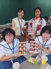 こんばんは。2日目の午後の日程もすべて終わりました! 午後は、台湾らしく、パイマップルケーキ作り体験。和菓子づくりにも似ていて、あんこを生地に包んで作成し、さらにみんなで思い思いのキャラクターにしていました。最初はおぼつかない手付きでしたが、何個か作っていくうちに可愛らしいケーキを作っていました。 そして今日からはホームステイです。今頃ホームステイ先で楽しく過ごしていることと思います! 明日はビーフン工場行ったりポン菓子づくりをしたり、楽しい体験をしてきたいと思います!