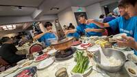 自分たちで鶏、鹿、ラム、豚、牛から食べたい肉を選び、野菜、味付けをして目の前で焼いてくれるモンゴリアンBBQ。全員がおかわりをして、3回目のおかわりをする生徒まで。その他にもしゃぶしゃぶも食べ、アイスもジュースもたくさん飲み食いしてきました。