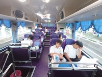 移動のバスではみんな疲れていて、朝ごはん食べずに爆睡中。寝ぼけている生徒に忘れ物をさせないように、しっかり飛行機に乗せたいと思います!