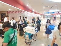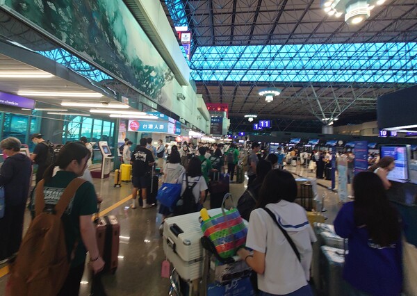 6時すぎに空港に着き、搭乗手続きをして荷物を預け、手荷物検査場を通過するまで1時間以上。それでもガイドさんのお陰で早目に手続きさせてもらいました。8時出発の飛行機に間に合うかヒヤヒヤしながら、また昨年生徒が保安検査場で引っかかったので、ドキドキしながらみんなで急いで手続きして、現在全員無事に待合室で待機しております。 いよいよ台湾ともお別れ…。長いようであっという間の5泊6日でした。それでは今から飛行機に乗って那覇に向かいます。