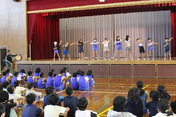 4年生の有志が応援団として、「沖糖の煙突」と「パプリカ」のダンスで元気づけてくれました。