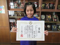「第31回児童・生徒の平和メッセージ」図画部門(主催:沖縄県)で『佳作』に輝いた根間 萌瑛さん(5年生)