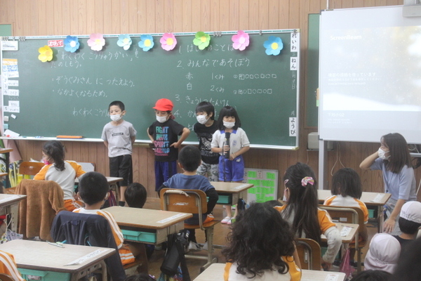 下地こども園交流会:1年生がぞうぐみさんを招待