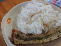 どーんと横たわったちくわのマヨ焼き、存在感抜群です。最初はチーズがついているのかな?とも思いました。青のりもかかっていて、とってもおいしい一品でした。