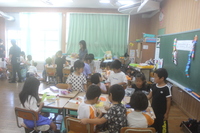 7月3日は、下地こども園のぞう組さんたちが1年生の教室にやってきて、七夕祭りを行いました。