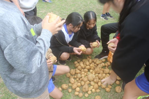 これまで水やりをして育てたジャガイモを、各学年に分かれて堀り、たくさん収穫しました。
