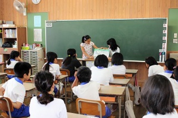 毎週金曜日の朝は、読書活動の日ですが、毎月1回は図書委員による読み聞かせを行います。