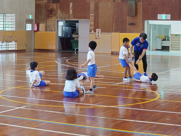 子ども達はのびのびと、楽しんでいました。苦手な動きをする場合は、お友達も協力したりして、温かい気持ちになる場面もありました。