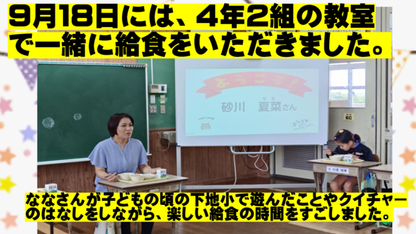 9月18日(木)は砂川夏菜さんが4-1に来て下さいました。