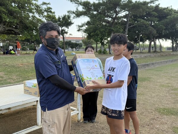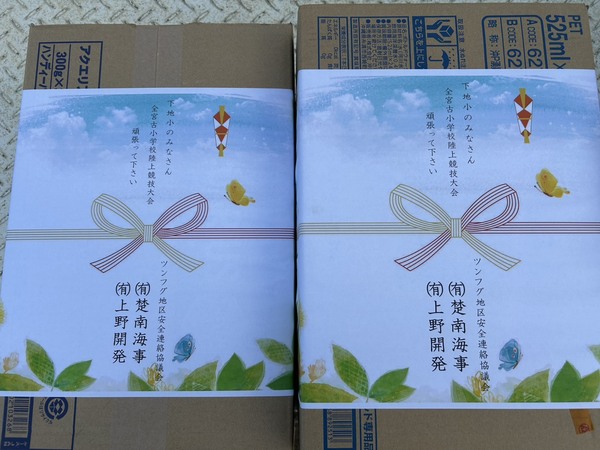 10月15日(水) 楚南海事さん・上野開発さん、陸上競技大会へ向けて贈呈