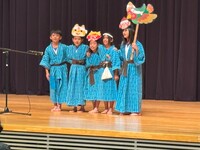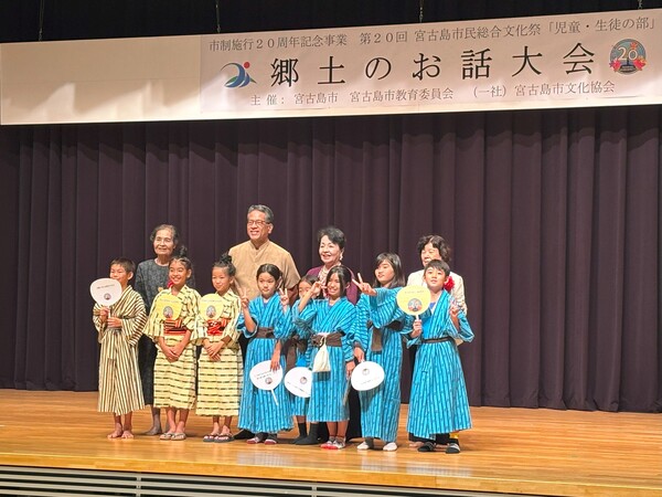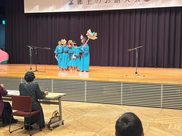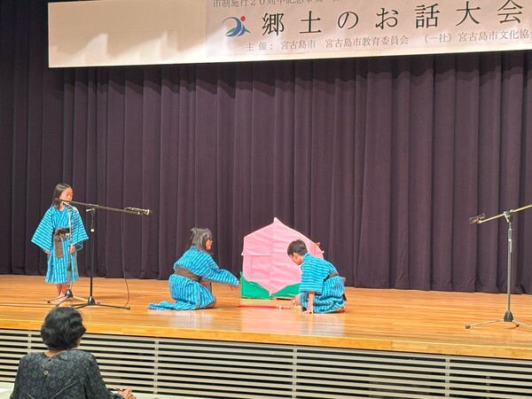 人前で、自分たちの考えた演技を披露し、宮古島の方言を楽しんでいる姿に