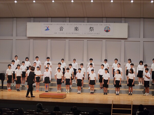 指揮は音楽専科の城間妙子先生、5年のピアノ伴奏は嘉数彩慧先生、6年の伴奏は濱崎梨奈先生でした。指導には宮国貴子先生も来て下さり、練習を頑張りました。そのお陰で、声が出るようになり、声が重なるようになり、一つ一つ出来ることが増えてきました。