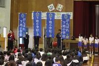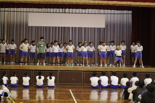 また、4年生は、下地昇殿等の応援歌「沖糖のえんとつ」を披露し、