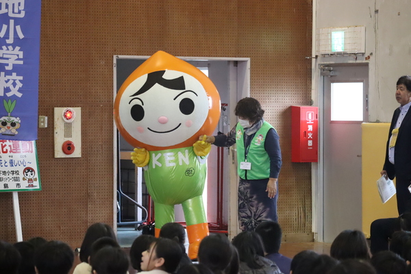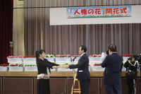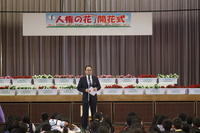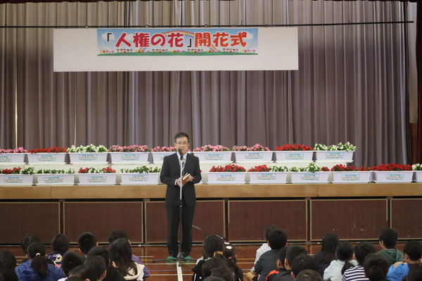 「人権の花」の「開花式」が全校児童参加の下