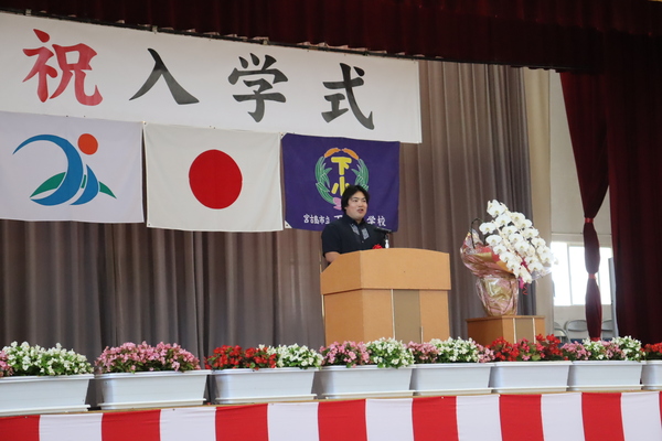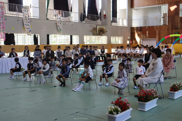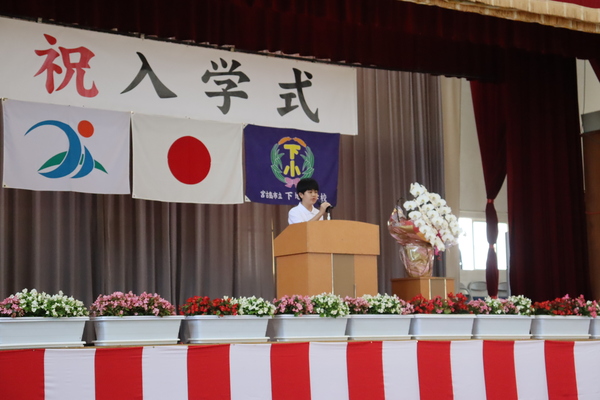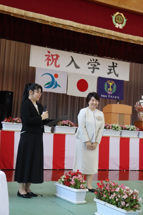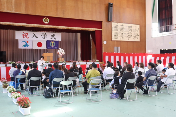 式では、下里道代指導主事が教育委員会告示を、多和田貴幸PTA会長からはお祝いのことば、保護者代表あいさつを津嘉山大志様から賜りました。