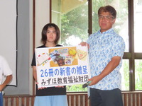 また、集会では、「みずほ教育福祉財団様」によるへき地教育助成事業の一環として、新たに寄贈された26冊の新書の伝達報告も行いました。子どもたちの読書活動に役立つ貴重な本の贈呈に対し、心より感謝申し上げます。誠にありがとうございます。