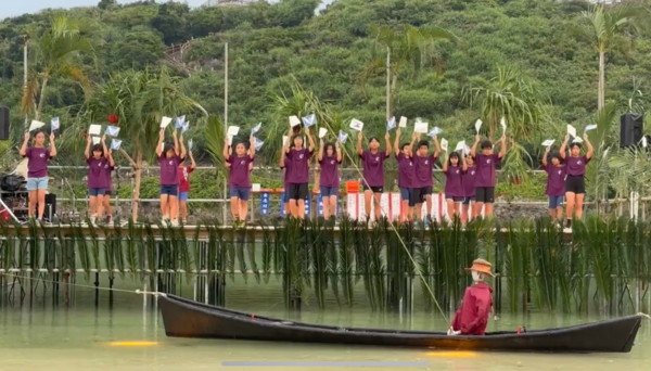 本校の子どもたちも記念Tシャツを身にまとい、「なりやま宣言」の発表や校歌遊戯の披露などを行い、地域のお祭りを盛り上げました。