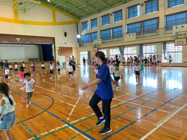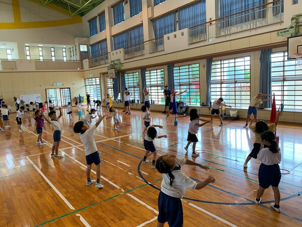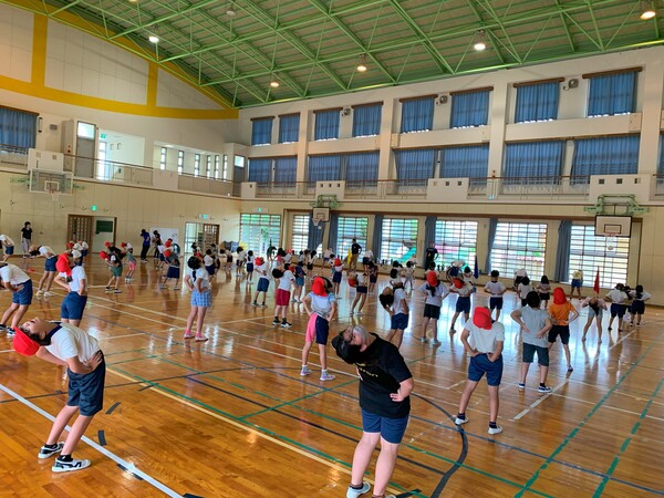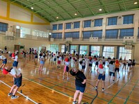 第1回 運動会全体練習(雨天のため体育館で実施)始まる!