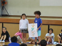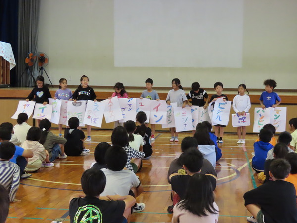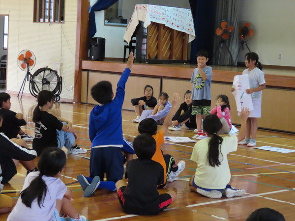 様々なテーマからの紹介に加え、興味関心を高めるためのクイズも交え、集会は15分間盛り上がりました。聞いている子どもたちも反応が良く、多くの感想が発表されました。