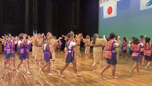 本校の5・6年生は、「うかのクイチャー」(うるかクイチャー愛好会との共演)を舞台いっぱいに元気よく踊り、会場から大きな拍手をいただきました。