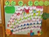 現在、職員室前には、全児童のふり返りシート「うるかっ子のにじ」~お世話になっている人に感謝の気持ちを持とう~が掲示されています。