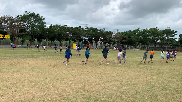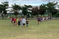 ※写真は、先日行われた「うるかっ子タイム」でのサーキットジョギングの様子です。2年生から6年生までが元気に参加しました。