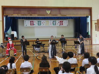 休憩後の第2部では、「クリスマスメドレー」と「となりのトトロメドレー」が披露され、会場は今日一番の盛り上がりを見せました。子どもたちは自然と手拍子や足拍子を打ち、最後は演奏に合わせて声を合わせて歌う児童も多く見られました。アンコールにも応えていただき、大変楽しいひとときとなりました。