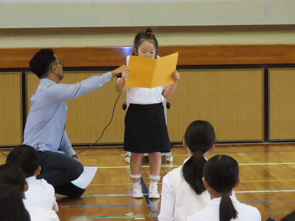 運動会や漢字の勉強など「2学期に頑張ったこと」や、「おもちゃ祭り」や「うるかっこタイム」などの楽しかったことについて発表しました。