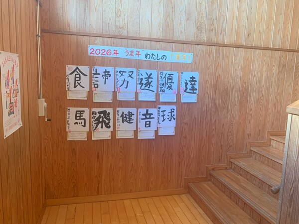 ※添付写真は、4年生の書き初めの作品です。今年の思いを漢字一文字で表現しています。