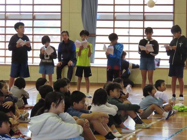 本日、保健・給食委員会による「給食集会」が行われました。 1月24日~30日の「全国学校給食週間」にちなんだ集会です。