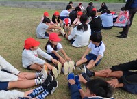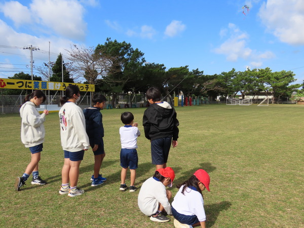 また、この日は図書室を利用しに来ていた池村こども園の年長さんたちも、急きょたこあげに参加しました。今度は、次年度に最上級生となる5年生が優しくエスコート。こうして思いやりの伝統が、次へとつながっていくのだと実感させられる光景でした。
