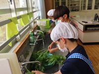 2月4日(水)の午後、3年生は大事に育てた「水菜」を収穫し、一手間加えてサラダを作り、試食しました。