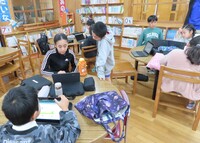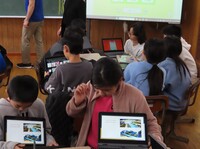 本校の5年生9名は、タブレット端末を巧みに活用しながら、北小学校の児童と活発にコミュニケーションを図りました。