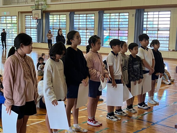 2月19日の表彰集会で、「第63回沖縄教育版画コンクール」の伝達表彰を行いました。5年生から10名もの皆さんが表彰を受け、大きな拍手に包まれました。
