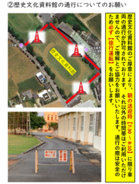 ※資料館のご厚意で通行許可をいただいています。上記時間外の通行はご遠慮ください。