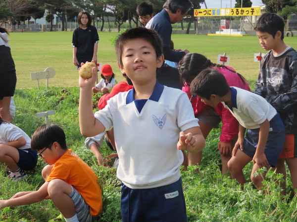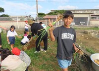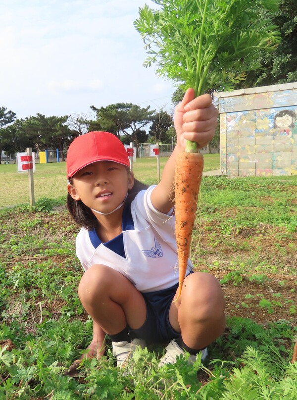 畑に響く子どもたちの元気な声とともに、自分たちの手で大切に育ててきた野菜を丁寧に収穫しました。高学年の子どもたちが低学年の子に対し、「野菜を傷つけないように」と、収穫のコツを優しく教えていました。異学年交流を通して、作物を大切にする心も一緒に育っていることを実感しました。