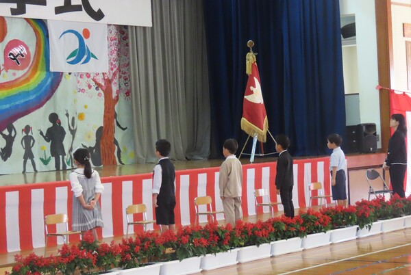 緊張した面持ちの新入生でしたが、その初々しい姿は、来賓の皆様の心も和ませてくれたようです。久貝教育部長、そして保護者代表の友利様からの励ましのお言葉を胸に、子どもたちは新しい一歩を踏み出しました。