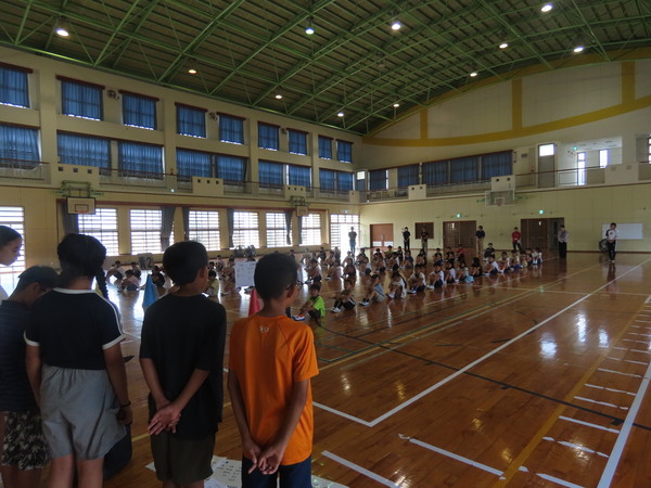 1年生から6年生までが協力して活動することで、異学年間の交流を深めていきます。今日は結成式と、初めてのメンバーでのゲームを楽しみました。