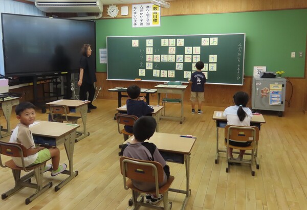 1年生にとっては初めての授業参観でしたが、とてもよく頑張っていましたね。五十音のひらがなカードを元気いっぱいに活用する姿が印象的でした。幼児教育でも文字に親しむ活動をしてきたかと思いますが、小学校では「読む・書く」ことがより大切になってきます。まさにそのスタートラインに立った5名の1年生は、これからものすごい吸収力でどんどん力をつけていくことでしょう。今後の成長が本当に楽しみです。